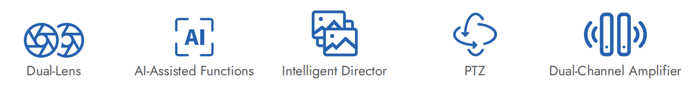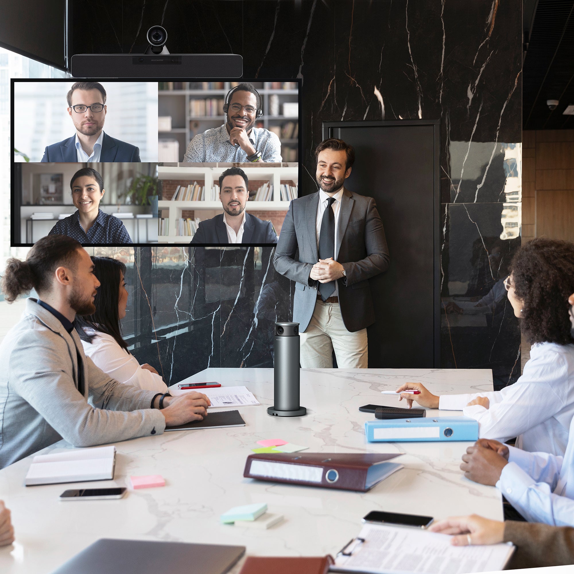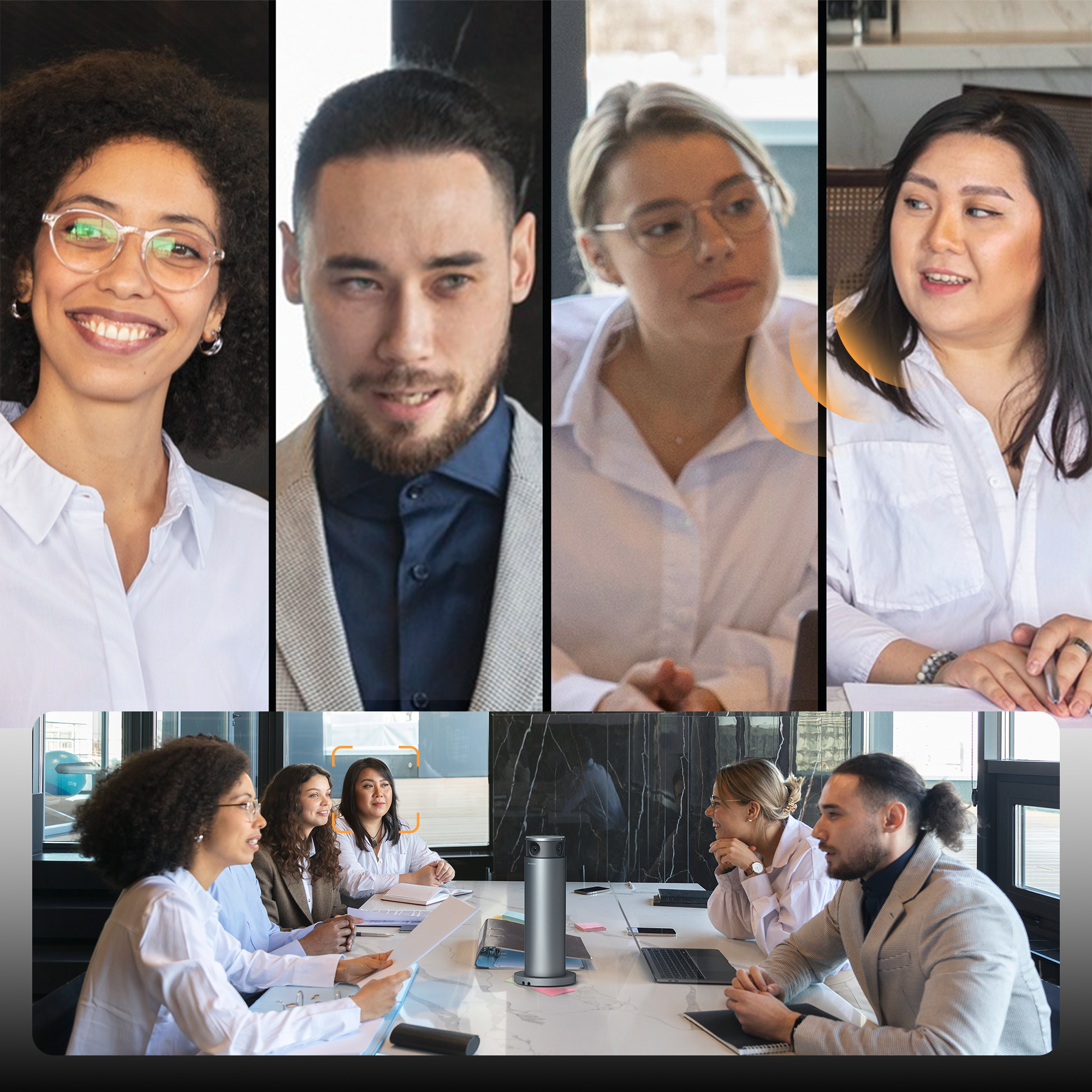 Tek başına çalışabilir veya eksiksiz bir görsel-işitsel çözüm için RC360 PRO masaüstü 360° panoramik kamera ile eşleştirilebilir. Yapay zeka destekli Akıllı Direktörü ile sistem otomatik olarak önden görünüm ve çok açılı katılımcı çekimleri arasında geçiş yapıyor. Bu, her zaman en iyi perspektifi sağlayan dinamik, gerçekçi bir iletişim deneyimi sağlar.