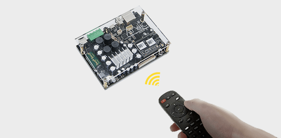 -IR uzaktan kumanda, ses açma/kapama, önceki/sonraki, anahtar modu(WiFi/Bluetooth/Hat girişi/USB/OPT), tiz/bas ayarı, favori kanallarınız için önceden ayarlanmış tuşlar dahil olmak üzere uygulama işlevlerinin çoğuna sahiptir.